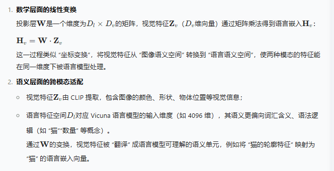 • 跨模态对齐: 通过投影层将视觉特征映射到语言空间